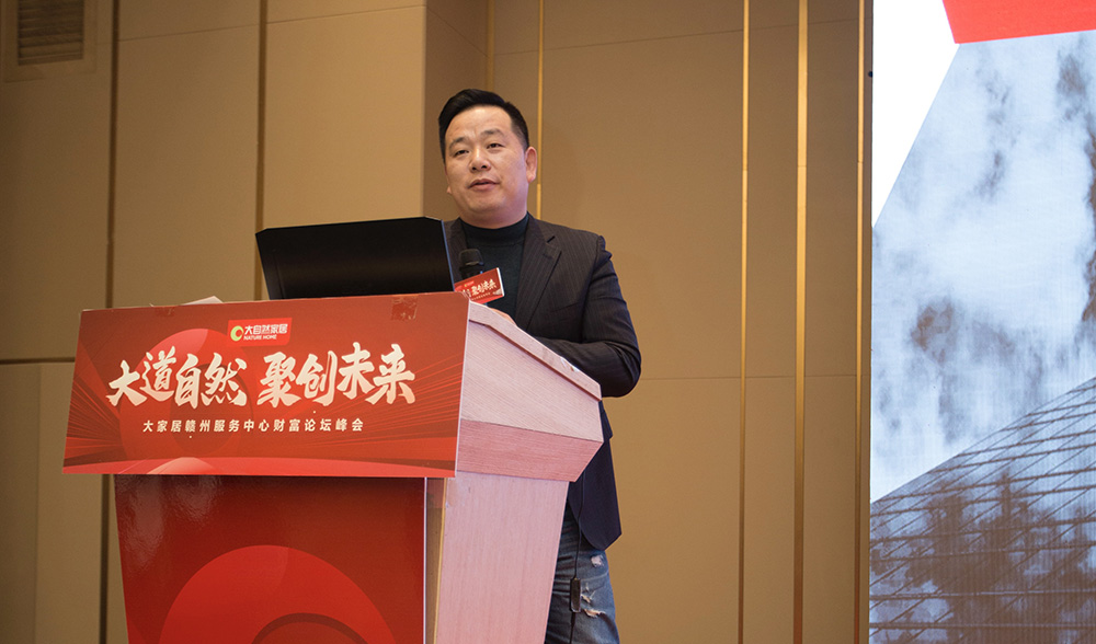 會議伊始,大自然家居董事長佘學(xué)彬先生進行開業(yè)致辭,為我們做行業(yè)趨勢及集團戰(zhàn)略的分享。