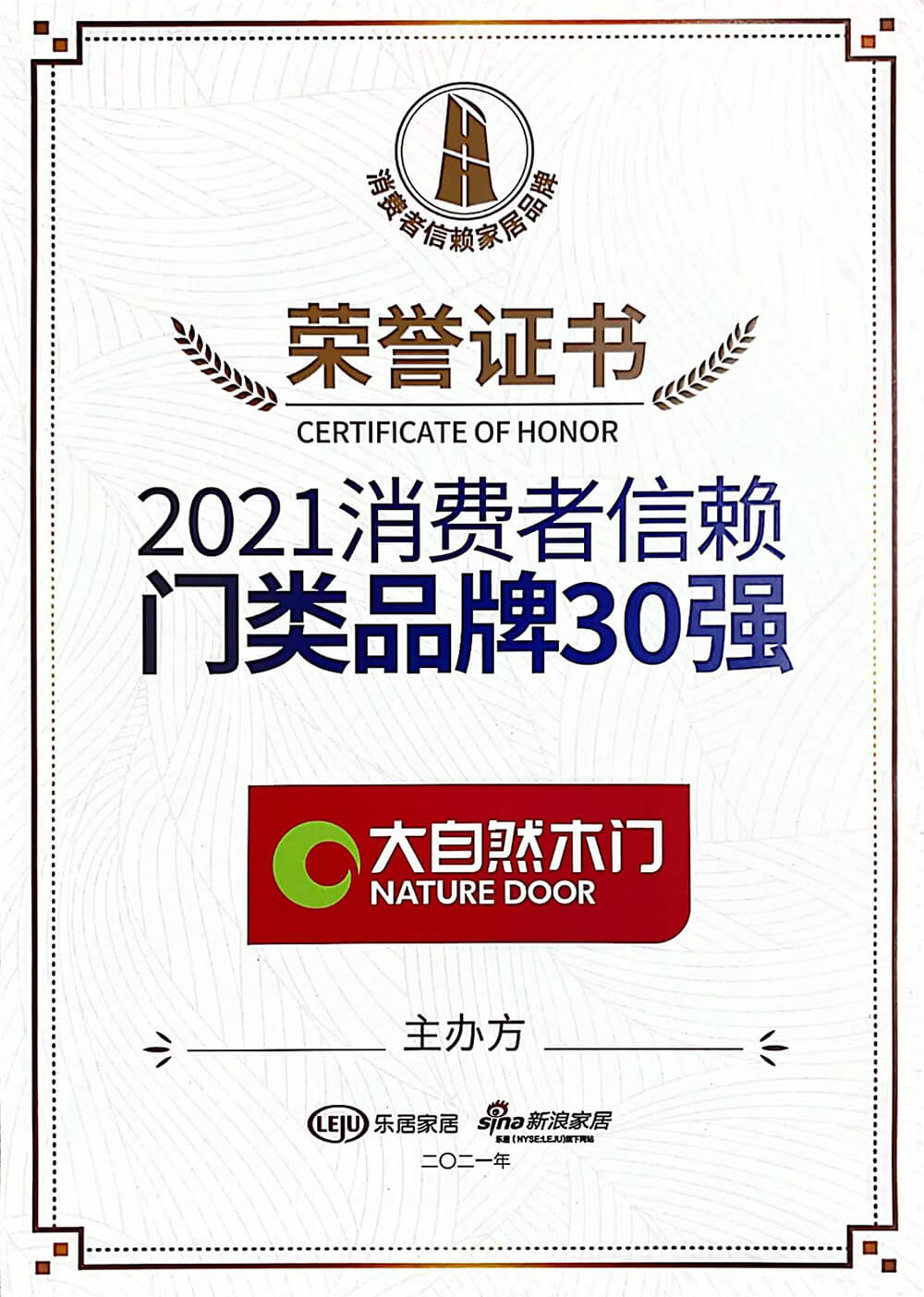 2021年12月18日,由樂居家居主辦,新浪家居承辦,CCTV·大國品牌、中國質(zhì)量新聞網(wǎng)·家居、家頁傳媒、大國中居聯(lián)合主辦的『智見·2021中國家居新時代盛典暨金致獎頒獎典禮』于廣東佛山盛大開幕。歷經(jīng)品類30強品牌評選、網(wǎng)絡(luò)票選及專家評審等環(huán)節(jié),榜單終于正式揭曉,大自然家居榮膺『智見·家居新時代』2021消費者信賴十大家居品牌以及2021年消費者信賴門類品牌30強雙獎項。