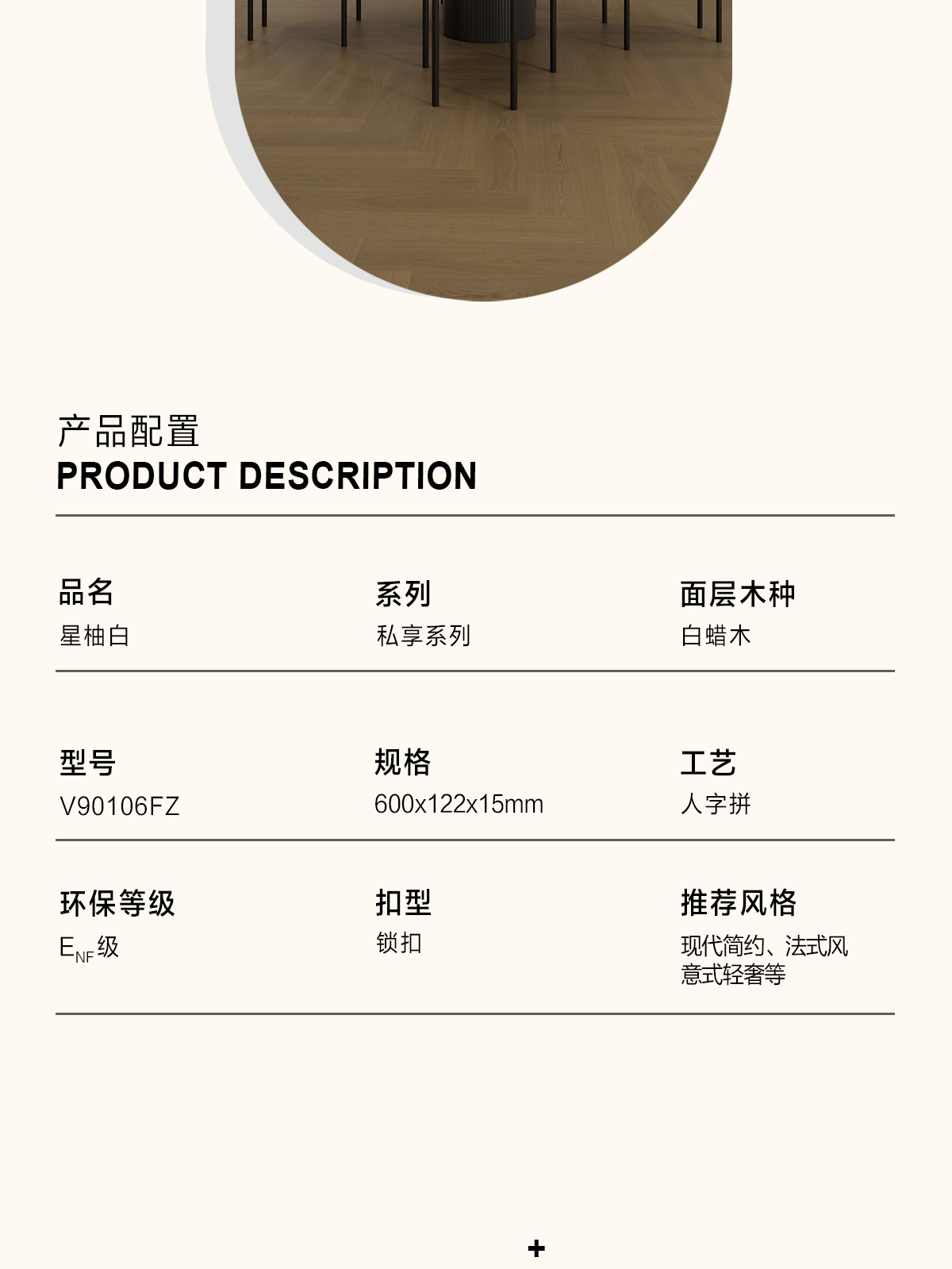 產品名稱/型號 星柚白V90106FZ(人字拼)