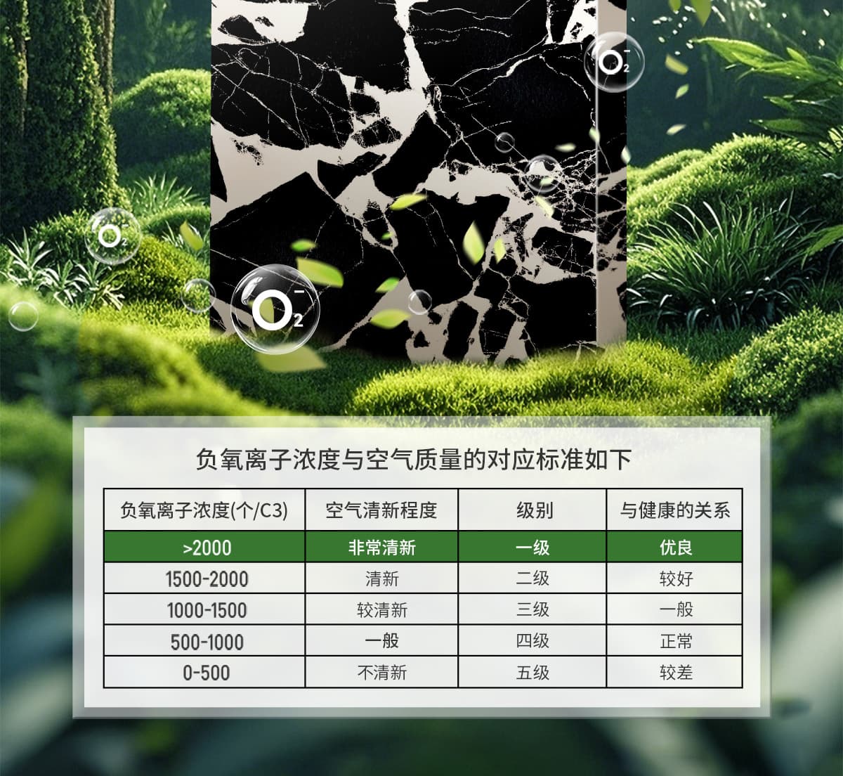 | 誘發(fā)空氣負(fù)離子量 | 比基礎(chǔ)環(huán)境提高10倍+ |